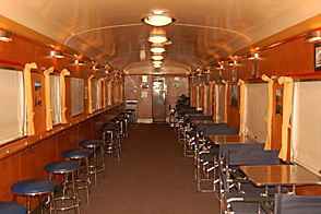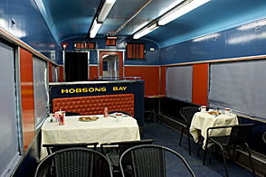 Multifunction car Hobson's Bay has a DJ desk, CD player, large open floor area and speakers throughout. Primarily used as a dance carriage, it can also take on a number of other roles. Would you like to hold a meeting or conference in a moving train, or experience the charm and tradition of the old fashioned dining car? All this and more is possible in this versatile vehicle.